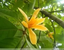 黄缅桂是木兰科、含笑属植物。常绿乔木,高达10余米;芽、嫩枝、嫩叶和叶柄均被淡黄色的平伏柔毛。…