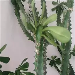 霸王鞭,是大戟科大戟属的多年生肉质灌木,全株含白色乳汁;茎直立,茎基部圆柱形,上部4~5纵棱,…