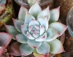 吉娃莲,景天科拟石莲花属,别名:吉娃娃,吉娃莲,植株小型,无茎的莲座叶盘非常紧凑。卵形叶较厚,带小尖,…