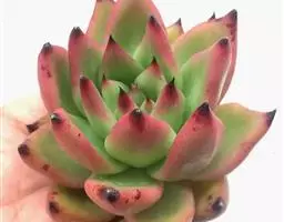 红缘莲花掌属蔷薇目、景天科植物,原产大西洋的加那利群岛。质厚,蓝绿色,被白霜,叶缘红褐色。聚伞花序,…