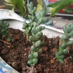蓝黛莲是一种景天科厚叶草属植物。叶片呈略扁的圆柱形,排列成莲座状;颜色为灰绿色,…