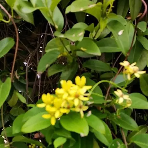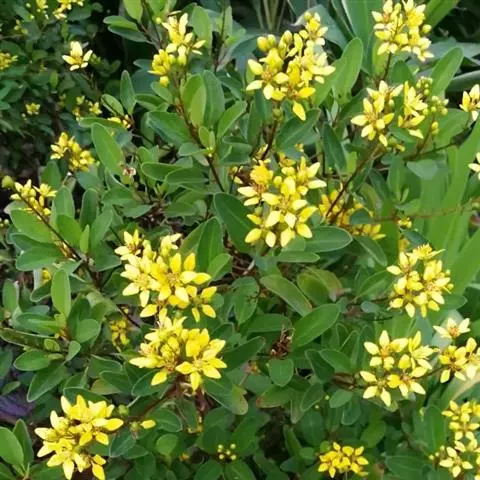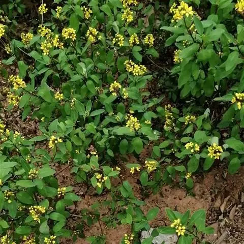 金英常绿灌木,株高约50-160厘米,嫩茎红色。叶片绿色,对生,椭圆形,先端尖,基部楔形,全缘。…