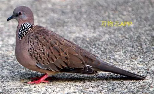 棕斑鸠,是鸽形目鸠鸽科斑鸠属鸟类。整个头和颈淡粉红色,头顶和前额较暗,颊、喉较淡,…