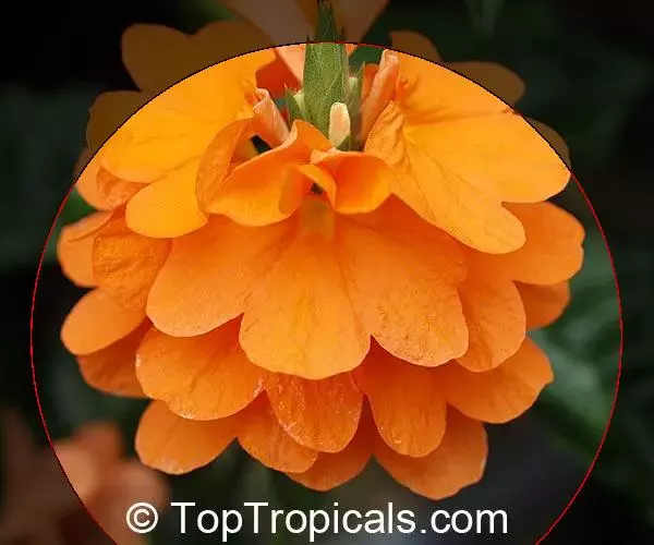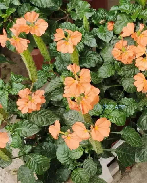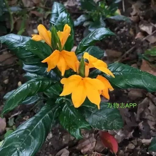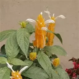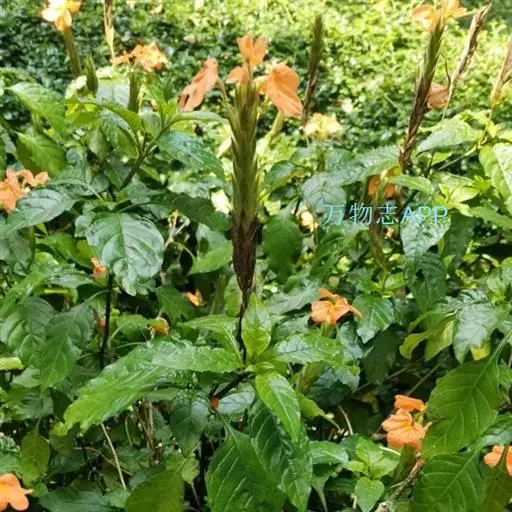 爵床科十字爵床属,常绿小灌木,株高约15~40cm,叶对生,阔披针形,全缘或波状,叶面平滑,浓绿富光泽;春末至初冬均能开花,腋出,花序密生如穗状,花瓣5裂,二唇状,橙红色及黄色,花姿雅致。花期夏、秋季。
