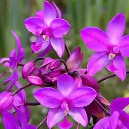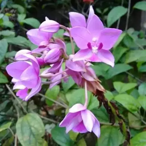 紫花苞舌兰:植株高达1米。假鳞茎卵状圆锥形,具3-5枚叶。叶质地薄,淡绿色,狭长,具折扇状的脉。…