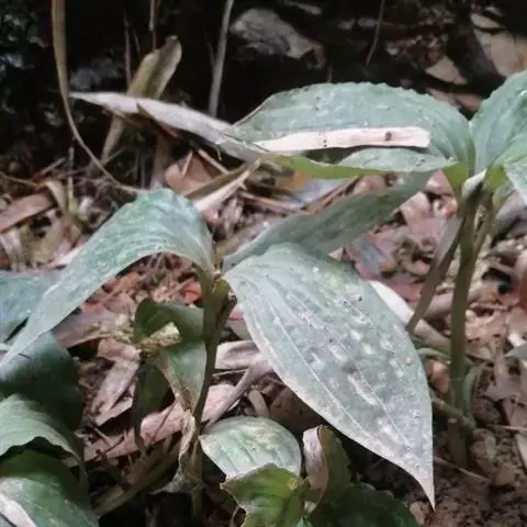 隐柱兰(学名:Cryptostylis arachnites (Bl.) Hassk.):植株高17-50厘米。根状茎粗短,具多条根;根粗厚,肉质。叶2-3枚,基生,叶片椭圆状卵形或椭圆形,上面绿色,无斑点,背面淡绿色,边缘全缘,光滑。花葶从叶基部抽出,直立,绿色,具2至多枚鞘状苞片,总状花序具10-20朵花,花较大,萼片线状披针形,黄绿色,花瓣线形,黄绿色,具1脉;唇瓣位于上方,长椭圆状披针形、长椭圆状卵形或披针状卵形,大,长15-21毫米,宽5-7毫米,不裂。花期5-6月。