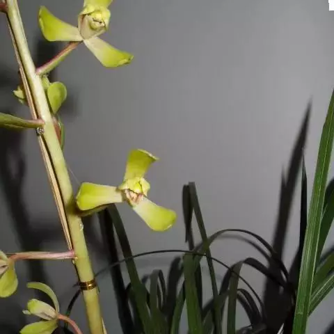 花葶从叶基部抽出,直立,高15-47厘米,细长,光滑,绿色,具2至多枚鞘状苞片,总状花序具10-20朵花,长8-10厘米;花苞片直立伸展,披针形,长1-1.5厘米,宽2-3毫米,先端渐尖,最下部的略长于或等长于子房;子房细圆柱形,不扭转,光滑,连花梗长8-14毫米;花较大,萼片线状披针形,黄绿色,长15-19毫米,宽1.5-2毫米,边缘内卷,先端渐尖,具3脉。