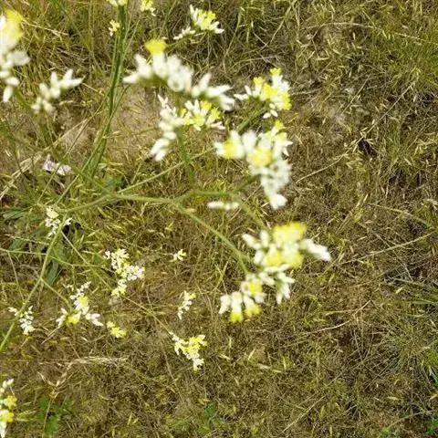 花序圆锥状,花序轴2至多数,绿色,密被疣状突起(有时仅上部嫩枝具疣),由下部作数回叉状分枝,往往呈之字形曲折,下部的多数分枝成为不育枝,末级的不育枝短而常略弯;穗状花序位于上部分枝顶端,由3-5(7)个小穗组成;小穗含2-3花;外苞长约2.5-3.5毫米,宽卵形,先端钝或急尖,第一内苞长约5.5-6毫米;萼长5.5-6.5(7.5)毫米,漏斗状,萼筒径约1毫米,基部偏斜,全部沿脉和脉间密被长毛,萼檐金黄色(干后有时变橙黄色),裂片正三角形,脉伸出裂片先端成一芒尖或短尖,沿脉常疏被微柔毛,间生裂片常不明显;花冠橙黄色。花期6-8月,果期7-8月。