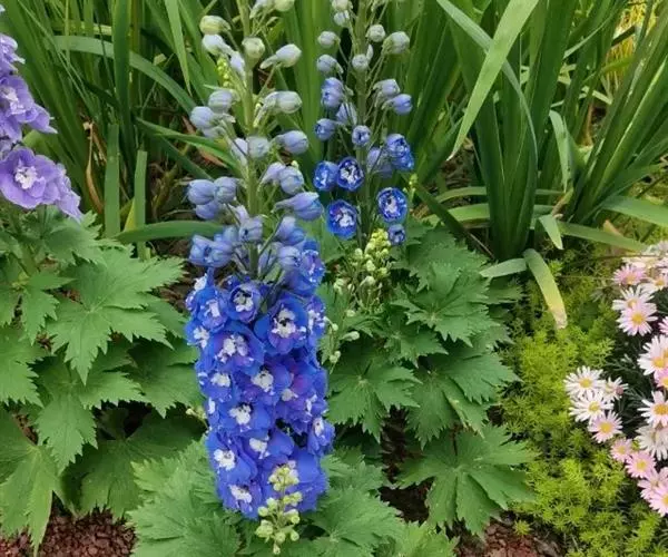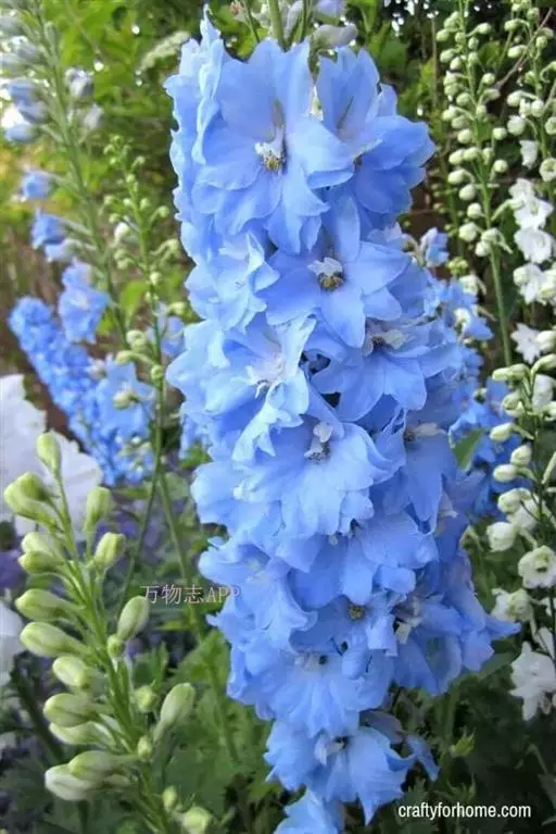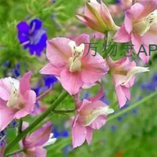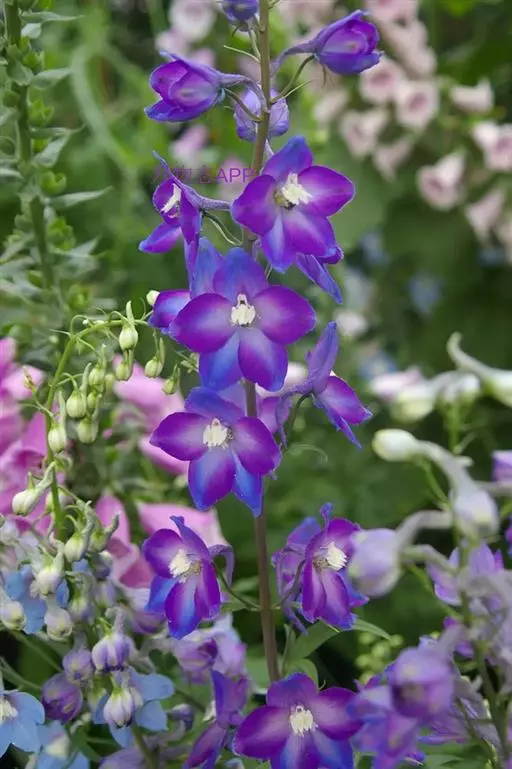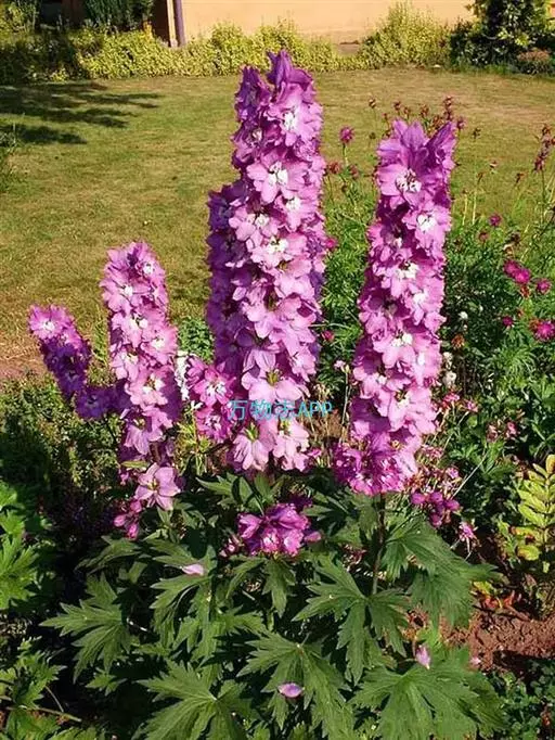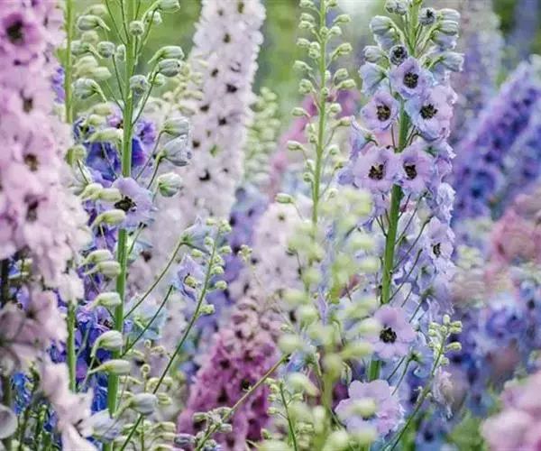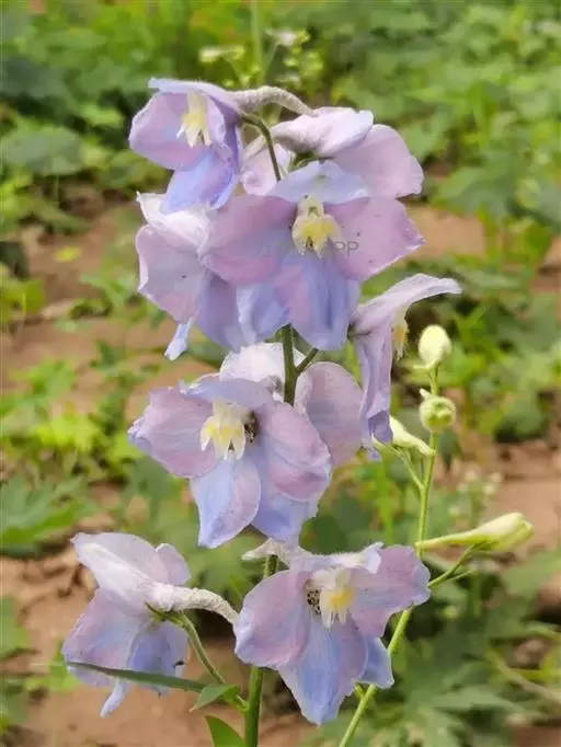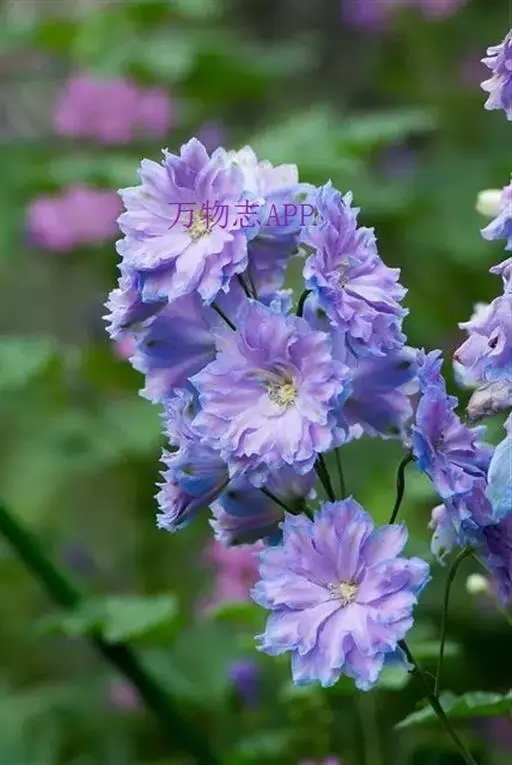 飞燕草花形别致,色彩淡雅。或丛植,栽植花坛、花境,也可用作切花。