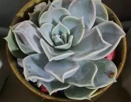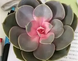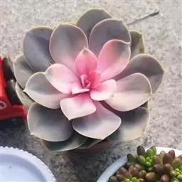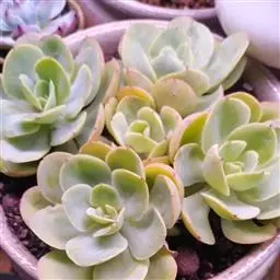 紫珍珠是景天科石莲花属的多年生肉质草本植物。植株中小型;叶片肉质,匙形,呈莲座状紧密排列;叶片粉紫色,…