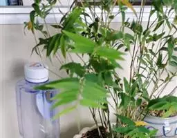 凤尾竹 Raeusch. ex Schult. ’Fernleaf’ R. A. Young)是禾本科,簕竹属孝顺竹的变种。植株较高大,杆高可达6米,竿中空,小枝稍下弯,下部挺直,绿色;竿壁稍薄;节处稍隆起,无毛;叶鞘无毛,纵肋稍隆起,背部具脊;叶耳肾形,边缘具波曲状细长繸毛;叶舌圆拱形,叶片线形,上表面无毛,下表面粉绿而密被短柔毛,小穗含小花,中间小花为两性;外稃两侧稍不对称,长圆状披针形,先端急尖;内稃线形,脊上被短纤毛,花药紫色,子房卵球形,羽毛状。成熟颖果未见。原产中国,华东、华南、西南以至台湾、香港均有栽培。凤尾竹喜温暖、湿润和阳光充足的环境,耐寒。宜土层深厚、肥沃、疏松的微酸性壤土。该种观赏价值较高,宜作庭院丛栽,也可作盆景植物。全草或根入药,味淡、微苦,性寒,有清热利湿、凉血止血、消肿解毒功效,可治痢疾、泄泻等多种病症。凤尾