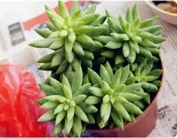 玉缀,别名翡翠景天景天科景天属常绿或半常绿多肉植物。植物匍匐下垂,翠绿色。叶小,多汁,纺锤形,、密…