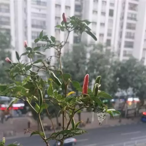 朝天椒茄科辣椒属一年或多年生草本植物;卵形;花通常单只生长于二分叉间,花梗直立,花稍俯垂,…
