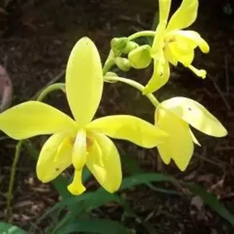 苞舌兰:假鳞茎扁球形,通常粗1-2.5厘米,被革质鳞片状鞘,顶生1-3枚叶。叶带状或狭披针形,…