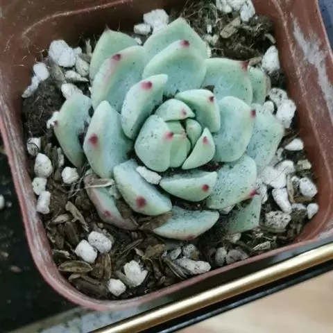 小红衣是景天科、拟石莲花属的一种多肉植物。叶片匙形,扁平细长,叶表具白粉,有明显的半透明边缘,…