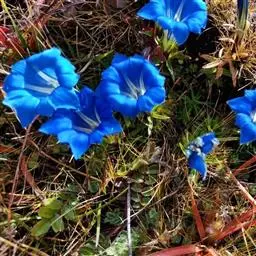 龙胆植物花色艳丽,色彩丰富,有紫、白、蓝、黄白等多种颜色,适宜作为花坛、花镜或盆花。龙胆最高不过四、五十厘米,大部份是矮小贴地丛生。一株上有许多分枝,花生于枝上顶端,成古钟形或漏斗形,有4-5个裂瓣,全缘的,也有细裂的成流海似的须。龙胆花在秋冬季一片枯黄的草丛中临风开放,显得分外朴实和幽静,龙胆开花一片片一簇簇,临风摇曳,显出一种淡雅、素静的美,因而成为著名的花卉。