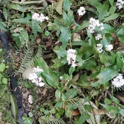 花序顶生或腋生,聚伞状花序,着生5-10朵花或稍多,花序梗具有柄的腺毛及短毛;苞片绿色,被毛;花梗很短,花被白色或粉红色,长约5毫米,5裂;