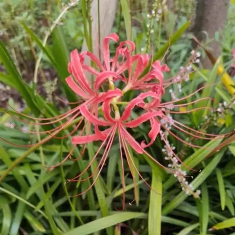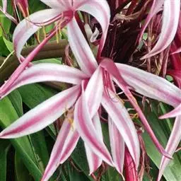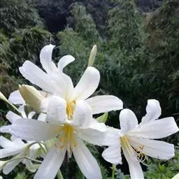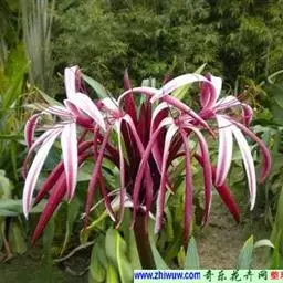长筒石蒜草本,地生。鳞茎卵球形;叶披针形;伞形花序,有花5-7朵,花白色;花被裂片腹面稍有淡红色条纹,…
