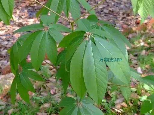 落叶乔木,常高15-20米,稀达25米,树皮平滑,灰褐色,常成薄片脱落。小枝圆柱形,紫褐色,嫩时密被长柔毛,渐老时脱落,有白色圆形或卵形皮孔。冬芽腋生于小枝的顶端,卵圆形,长1.5-2厘米,栗褐色,有树脂,外部的6-8枚鳞片常排列成覆瓦状。掌状复叶对生,有长10-15厘米的叶柄,嫩时微有短柔毛,渐老时无毛;小叶5-7枚,稀9枚,长圆倒卵形、长圆形或长圆倒披针形,先端锐尖或短锐尖,基部阔楔形或近于圆形,稀近于心脏形,边缘有很密的、微内弯的、骨质硬头的小锯齿,长10-25厘米,宽4-8厘米,上面深绿色,有光泽,除主脉基部微有长柔毛外其余部分无毛,下面淡绿色,有灰色绒毛或长柔毛,嫩时较密,侧脉20-25对在上面微凸起,在下面很显著地凸起,小叶柄长1.5-2.5厘米,稀达3厘米,微有短柔毛。