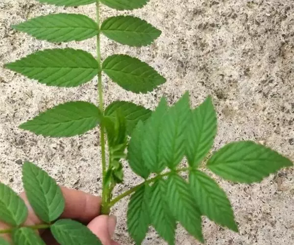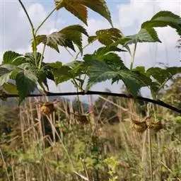 空心泡(学名:Rubus rosaefolius Smith):小枝圆柱形,具柔毛或近无毛,常有浅黄色腺点,疏生较直立皮刺。小叶卵状披针形或披针形,顶端渐尖,基部圆形,两面疏生柔毛,有浅黄色发亮的腺点,下面沿中脉有稀疏小皮刺,边缘有尖锐缺刻状重锯齿;顶生小叶和叶轴均有柔毛和小皮刺,被浅黄色腺点;托叶卵状披针形或披针形,具柔毛。