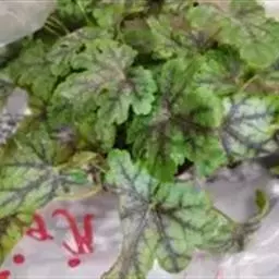 受叶脉限制,叶片上有近园形多角病斑、潮湿时背面有白霉,后期病斑枯死,变褐色至叶片干枯。