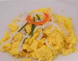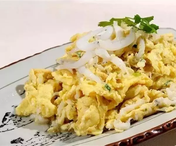 银鱼炒蛋讲究香、鲜、嫩。其特点是鱼蛋滑嫩,诱人食欲。