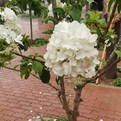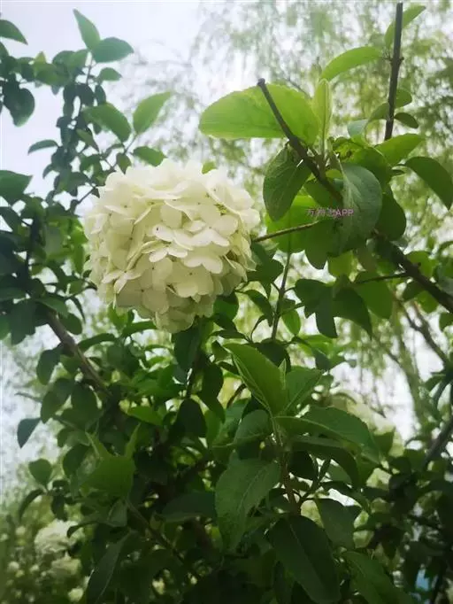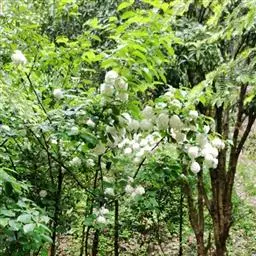花序为大型白色花朵,形状像绣球,非常美观,是优良观花园林绿化树种。