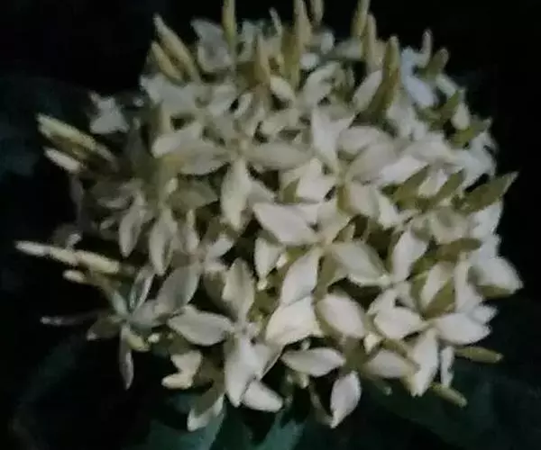 聚伞花序直径8-15厘米,全部由大型不孕花组成,总花梗长1-2厘米,第一级辐射枝5条,花生于第三级辐射枝上;萼筒筒状,长约2.5毫米,宽约1毫米,无毛,萼齿与萼筒几等长,矩圆形,顶钝;花冠白色,辐状,直径1.5-4厘米,裂片圆状倒卵形,筒部甚短;雄蕊长约3毫米,花药小,近圆形;雌蕊不育。花期4-5月。