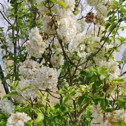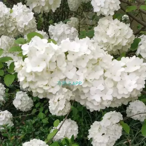 绣球荚蒾 落叶或半常绿灌木,高达4米;树皮灰褐色或灰白色;芽、幼技、叶柄及花序均密被灰白色或黄白色簇状短毛,后渐变无毛。