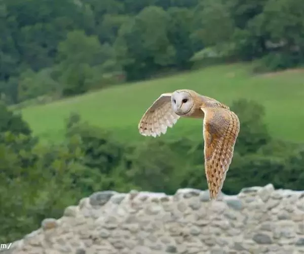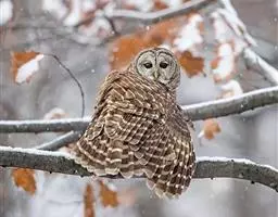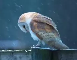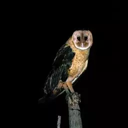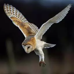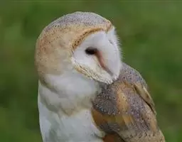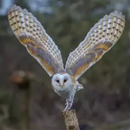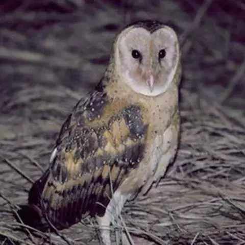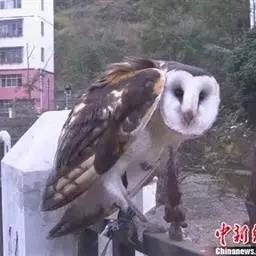 仓鸮(学名:Tyto alba):是鸟纲、草鸮科的中型鸟类,共有32个亚种。体长33-39厘米,翼展85-93厘米,体重470-570克。头大而圆,面盘明显,呈心脏形,白色,四周皱领橙黄色,上体为斑驳的灰色及橙黄色,并具精细的黑色和白色斑点。下体白色,稍沾淡黄色,具暗褐色斑点。