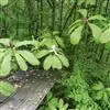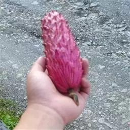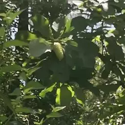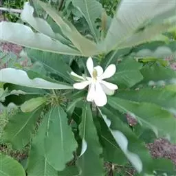 3、落叶乔木,高6-10m。树皮灰白色,近光滑。小枝淡褐色,初时有毛,后变无毛。顶芽卵形,被淡黄色长绢毛。单叶互生;叶柄长1-2.5cm;叶片倒披针形、倒披针状长椭圆形或长椭圆状倒卵形,长6-14cm,宽3-7cm,先端细尖或钝圆,稀短尾状钝尖,基部楔形,全缘,上面深绿色,无毛,下面淡绿色,被极细短毛,羽状侧脉7-10对。花白色,先叶开放,花梗粗长,直立,长1-1.5 cm,密被淡黄色长绢毛;花被9,外轮3片较小,膜质,萼片状,内两轮白色,基部带红色;雄蕊多数,圆柱状卵形;心皮多数,每心皮有2个胚珠。聚合果圆柱形,长5-8cm,直径1.8-2.5cm,下垂,幼时绿色,稍带紫红色,熟时暗紫黑色,果梗长约1cm,密生黄色长绒毛。花期5-6月,果期8-9月。