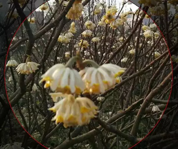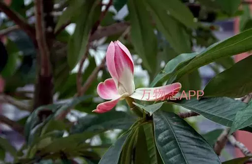 2、落叶小乔木或灌木,高1.5-3m或更高。树皮淡灰褐色;小枝细长,疏生细长毛,嫩枝密被短柔毛。冬芽椭圆形或长圆形,被棕色有光泽的短毛。单叶互生;叶柄长1-4cm;托叶痕长为叶柄的1/2;叶片披针状椭圆形或倒卵状椭圆形,长6-14cm,宽4-10cm,先端尖或短渐尖,基部楔形,上面深绿色,无毛,下面灰绿色,除沿叶脉疏生绒毛外,余无毛。花与叶同时开放,单生于枝顶,有香气,呈杯状,直径约6cm;花被9片,肉质,乳白色或淡粉红色至粉红色,倒披针形或近匙形;雄蕊多数,长约1cm,花丝长约4mm,呈紫红色,花药药隔先端尖呈黄色;雌蕊群椭圆形.雌蕊柄长约5mm.花柱细而弯曲。