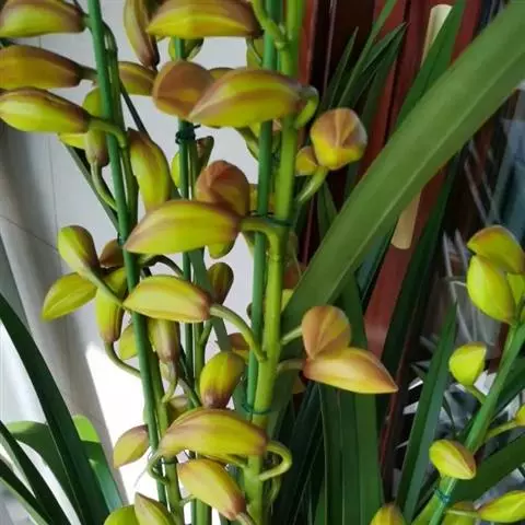 兰花:附生或地生草本,叶数枚至多枚,通常生于假鳞茎基部或下部节上,二列,带状或罕有倒披针形至狭椭圆…