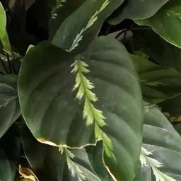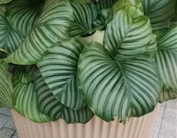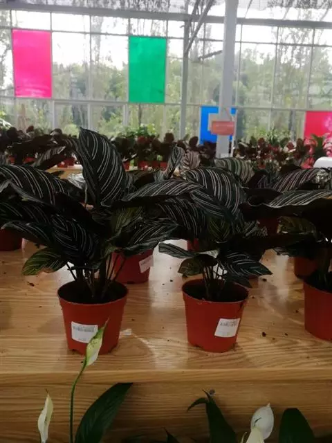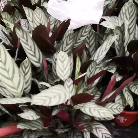 花叶竹芋:竹芋科,竹芋属匍匐状分枝草本植物,植株矮小,高可达40厘米,叶片长圆形、椭圆形至卵形,基…