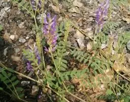 总状花序长15-30厘米,中部以上有颇密集的花;苞片线状披针形至线形,远比小苞片长,早落;小苞片卵形,长不及2毫米;花2-3朵聚生于花序轴的节上;花萼钟形,长8-10毫米,被黄褐色柔毛,裂片披针形,渐尖,比萼管略长;花冠长10-12毫米,紫色,旗瓣倒卵形,基部有2耳及一黄色硬痂状附属体,具短瓣柄,翼瓣镰状,较龙骨瓣为狭,基部有线形、向下的耳,龙骨瓣镰状长圆形,基部有极小、急尖的耳;对旗瓣的1枚雄蕊仅上部离生;子房线形,被毛。