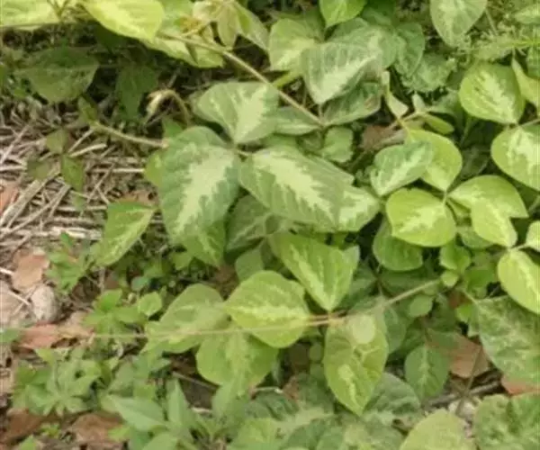 该变种与原变种区别在于顶生小叶菱状卵形或宽卵形,侧生的斜卵形,长和宽10-13厘米,先端急尖或具长小尖头,基部截平或急尖,全缘或具2-3裂片,两面均被黄色粗伏毛;花冠长16-18毫米;旗瓣近圆形。花期9月,果期11月。