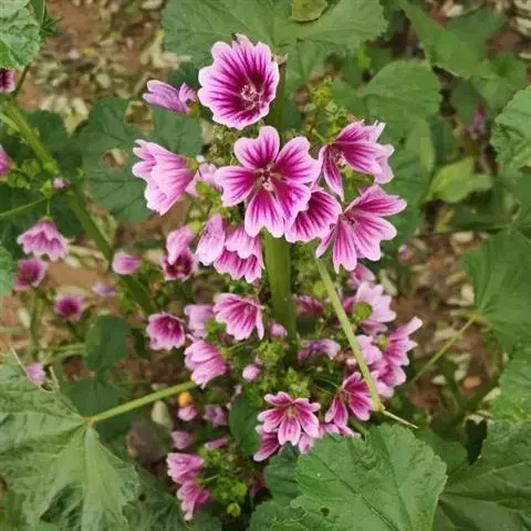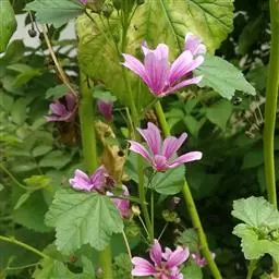 多年生草本。叶互生,肾形, 果实扁圆形,果片背面具网纹,网纹显著突起成脊状。种子近圆形,种脐黑褐色,位于腹面凹口内。花果期4-9月。种子繁殖。圆叶锦葵具有益气止汗,利尿通乳,托毒排脓的功效,主要用来治疗贫血,乳汁缺少,自汗,盗汗,肺结核咳嗽,肾炎等疾病。生于荒野、草坡。