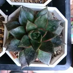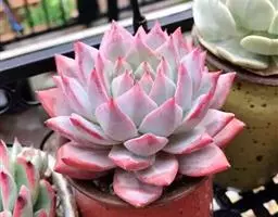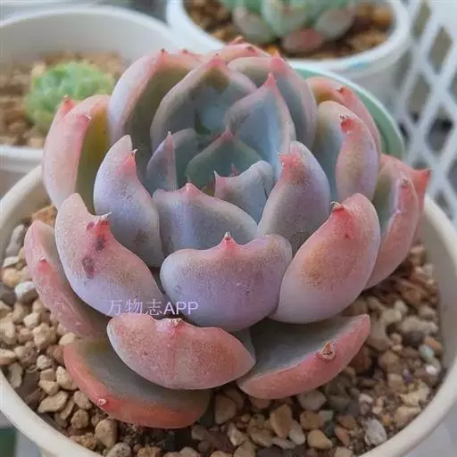 大和锦是景天科拟石莲花属的多肉植物。肉质叶排成紧密的莲座状,广卵形至散三角卵形,背面突起呈龙骨状,…