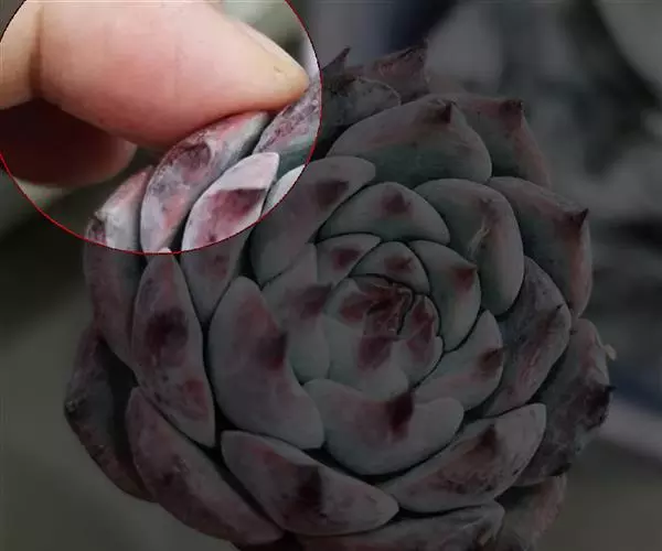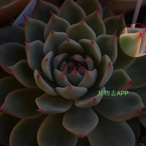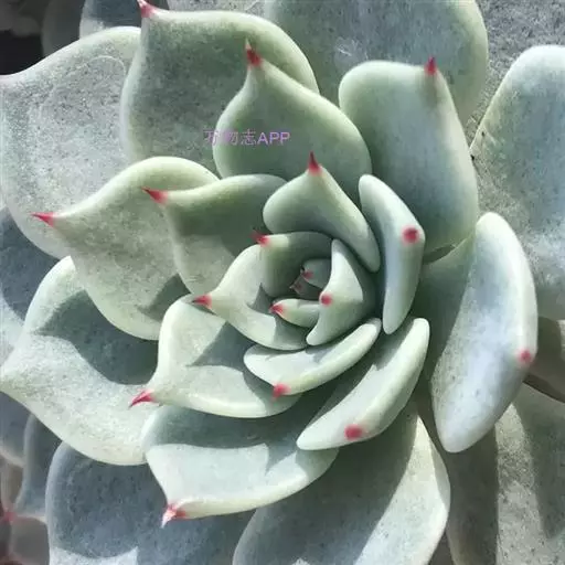 蓝绿至灰绿、淡绿色,并被有浓厚的白粉,日照充足时顶端的小尖呈美丽的玫瑰红或深粉红色。