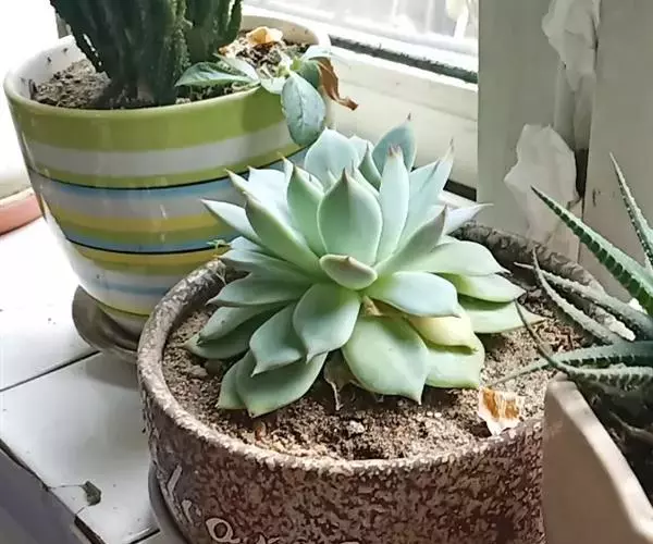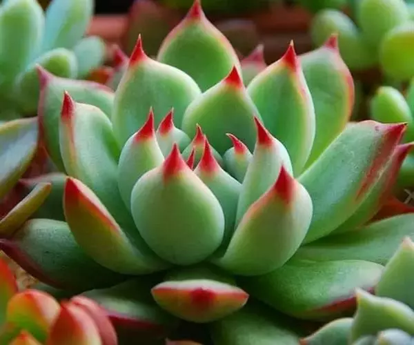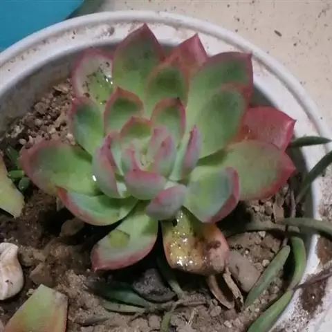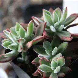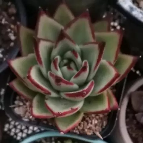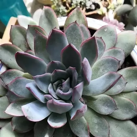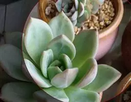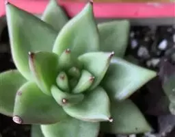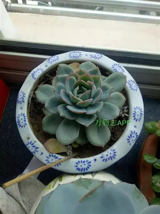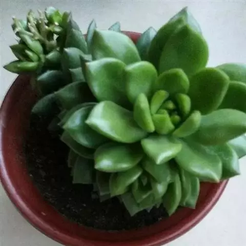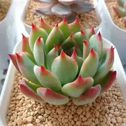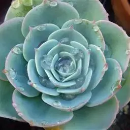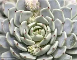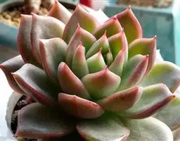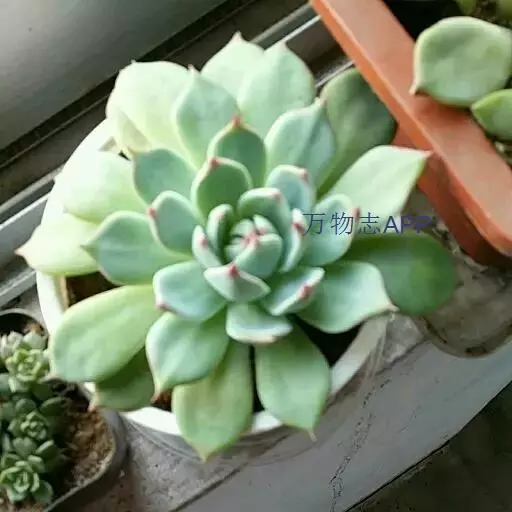 吉娃莲,景天科拟石莲花属,别名:吉娃娃(因为常与狗名混淆,所以大多数情况只叫吉娃莲), 原产于墨西哥奇瓦瓦州,生长在空气流通较好、日照充分的山坡上。吉娃莲,植株小型,无茎的莲座叶盘非常紧凑。卵形叶较厚,带小尖,蓝绿色被浓厚的白粉,叶缘为美丽的深粉红色。花序先端弯曲,钟状,红色。栽培不太困难,夏天不能浇过多的水。叶尖的红色特别美丽,是一种观赏性很强的多肉植物。