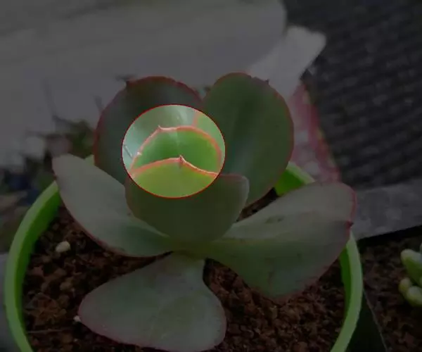 植株小型,无茎的莲座叶盘非常紧凑。卵形叶较厚,带小尖,长4厘米、宽2厘米。