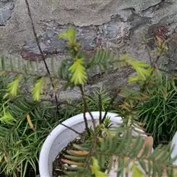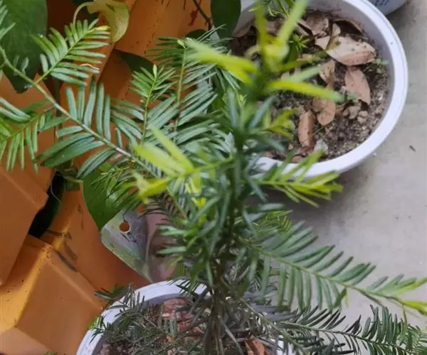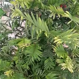 老叶自下而上发生黄叶,但新叶一般生长正常,一般是浇水时没有一次性浇透,浇的量太少根部缺水造成的。有时顶叶干枯卷曲,碰碰干叶掉落,但老叶长势正常,一般也是根部缺水所致,应一次性的浇透水。浇水时一定要先将盆沿的裂缝用物体压实,防止水浇下去从裂缝处快速漏掉。造成浇透水的假像,时间一长会使根部因缺水而使树干死。晚上搬到室外多接受雨露,早晚接受两小时的阳光使红豆杉恢复长势。