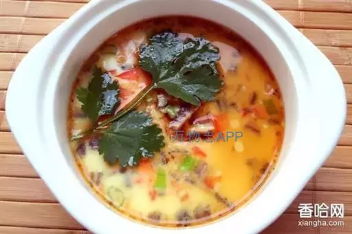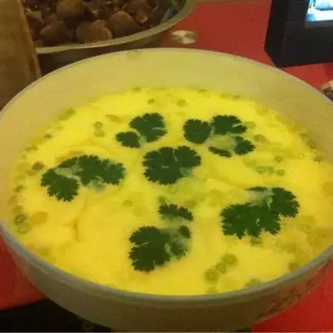 将鸡蛋去壳放入碗中,上屉蒸成形前放入切碎的香菜,成形后放入葱(切末)、姜(切末)、盐及香油,再蒸2分钟即可。