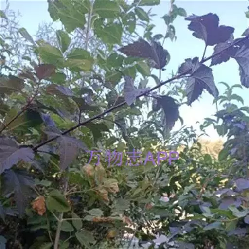 风箱果(学名:Physocarpus amurensis (Maxim.) Maxim.)蔷薇科灌木,高达3米;小枝圆柱形,稍弯曲,幼时紫红色,老时灰褐色。叶片三角卵形至宽卵形;叶柄微被柔毛或近于无毛;托叶线状披针形,早落。花序伞形总状,总花梗和花梗密被星状柔毛;苞片披针形,早落;花萼筒杯状;萼片三角形;花瓣白色;花药紫色;心皮外被星状柔毛,花柱顶生。蓇葖果膨大,卵形,熟时沿背腹两缝开裂,外面微被星状柔毛,内含光亮黄色种子2-5枚。花期6月,果期7-8月。