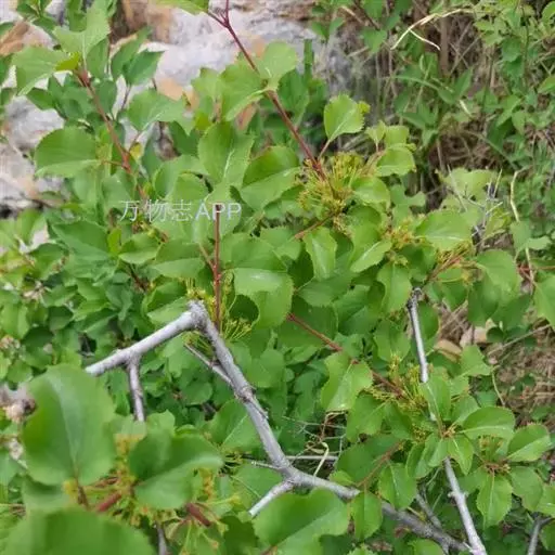 灌木或小乔木,高2-3米.树皮灰褐色;小枝常对生或近对生,稀兼互生,暗紫色或紫红色,光滑无毛,枝端有时具针刺;顶芽较大,长卵形,紫黑色,具数个鳞片,鳞片边缘具缘毛。叶薄纸质或纸质,近对生或对生,或兼互生,在短枝上簇生,卵状心形或卵圆形,稀近圆形或椭圆形,长1.5-6(8)厘米,宽1.5-4.5(6)厘米,顶端钝圆或突尖,基部心形或圆形,边缘具密锐锯齿,侧脉每边4-5条,两面稍凸起,无毛,叶柄长1-3(4)厘米,带红色或红紫色,上面有小沟,多少有疏短柔毛。