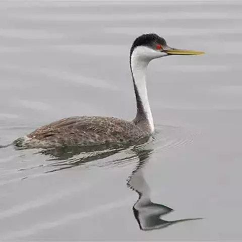 北美鸊鷉:体长约56至74厘米,体重1400克,是鸊鷉中最大的一种。头冠与颈背部为黑色,背部是褐灰…