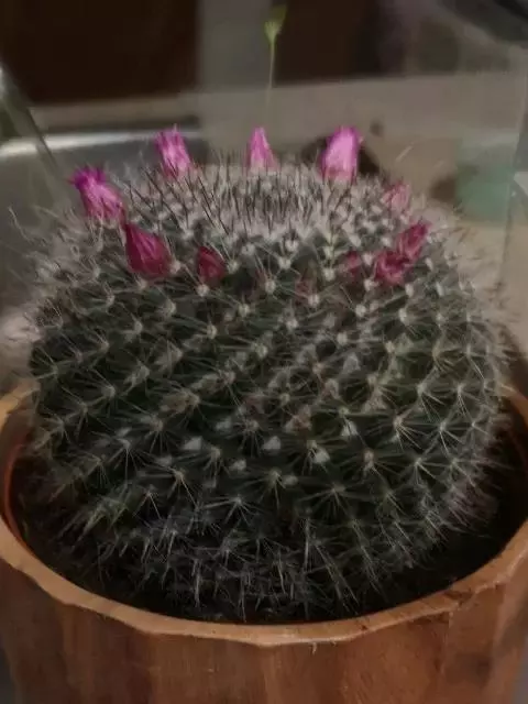 江守玉为仙人掌科强刺球属,植株扁圆形至球形,后成圆柱状,体色灰绿,刺座上附生白色绒毛,花橙黄色,漏…