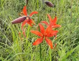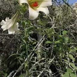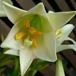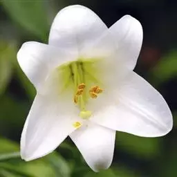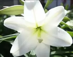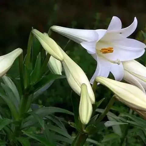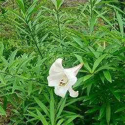 麝香百合(学名:Lilium longiflorum Thunb.):在中国台湾亦称铁炮百合。鳞茎球形或近球形,高2.5-5厘米;鳞片白色。茎高45-90厘米,绿色,基部为淡红色。叶散生,披针形或矩圆状披针形,两面无毛。花单生或2-3朵;花喇叭形,白色,筒外略带绿色。蒴果矩圆形,长5-7厘米。花期6-7月,果期8-9月。