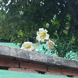 花单生或2-3朵;花梗长3厘米;苞片披针形至卵状披针形,长约8厘米,宽1-1.4厘米;花喇叭形,白色,筒外略带绿色,长达19厘米;外轮花被片上端宽2.5-4厘米;内轮花被片较外轮稍宽,蜜腺两边无乳头状突起。花丝长15厘米,无毛;子房圆柱形,长4厘米,柱头3裂。蒴果矩圆形,长5-7厘米。花期6-7月,果期8-9月。
