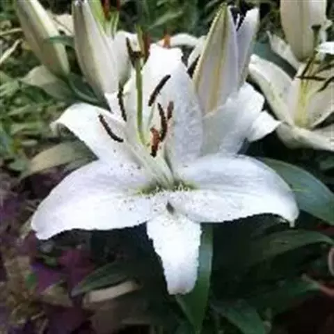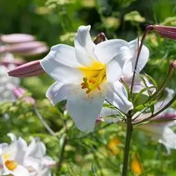 麝香百合是百合科百合属的多年生球根草本植物。鳞茎呈近球形,鳞片白色;茎高45-90厘米,绿色,…